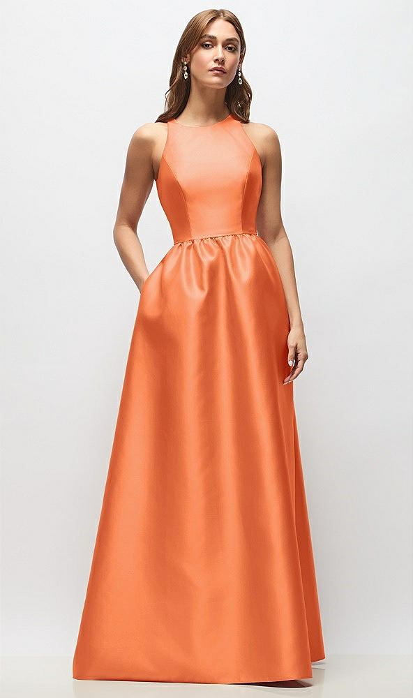 Sleeveless Keyhole Back Satin Maxi Dress in Portofino Orange