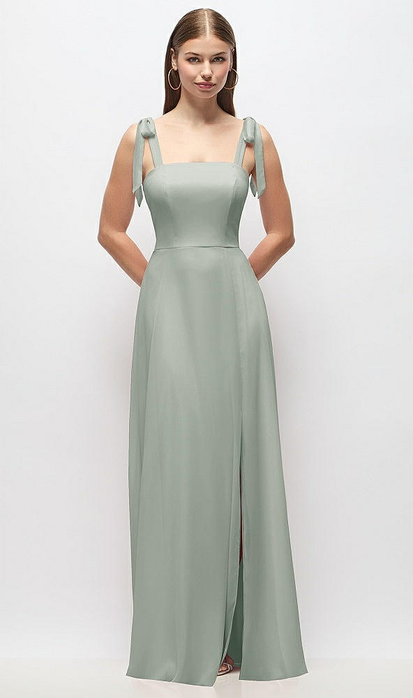 Tie-Shoulder Chiffon Maxi Dress with Front Slit in Willow Green