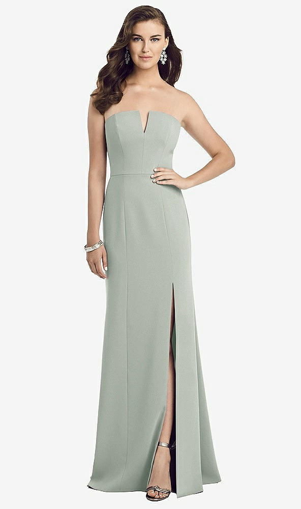 Strapless Notch Crepe Gown with Front Slit in Willow Green