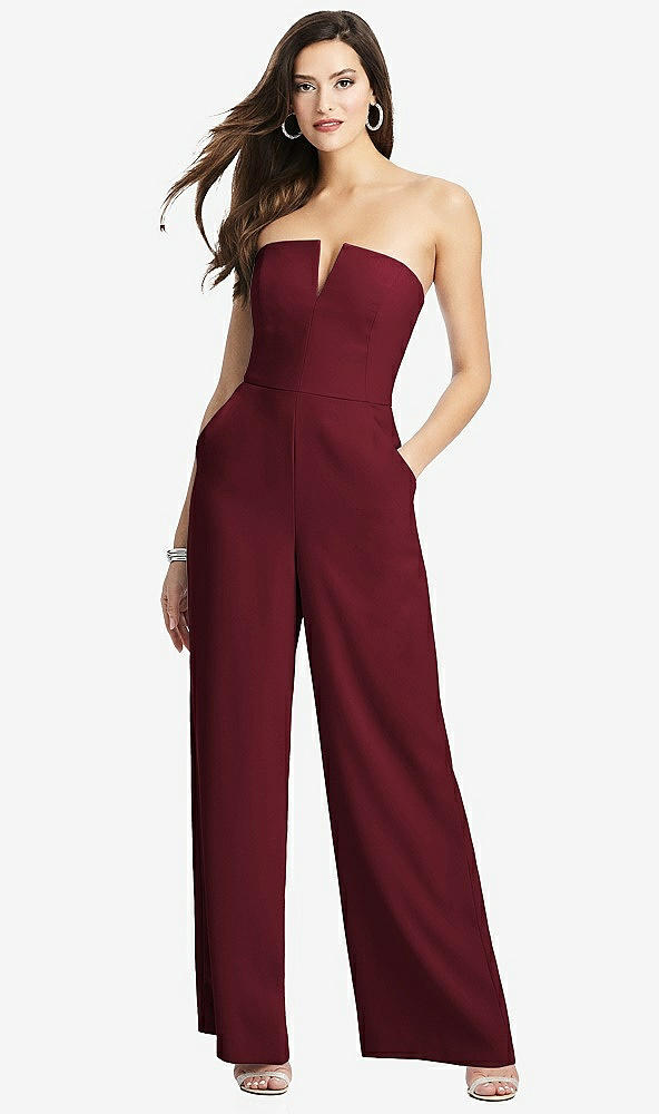 Strapless Notch Crepe Jumpsuit with Pockets in Cabernet