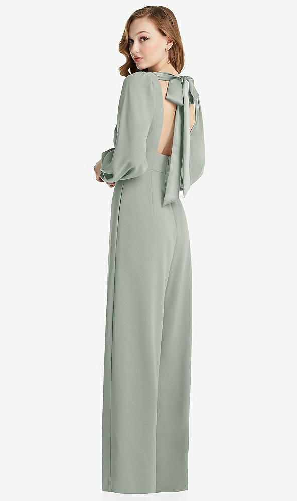 Bishop Sleeve Open-Back Jumpsuit with Scarf Tie in Willow Green & Willow Green