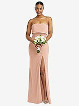 Strapless Overlay Bodice Crepe Maxi Dress with Front Slit in Blush