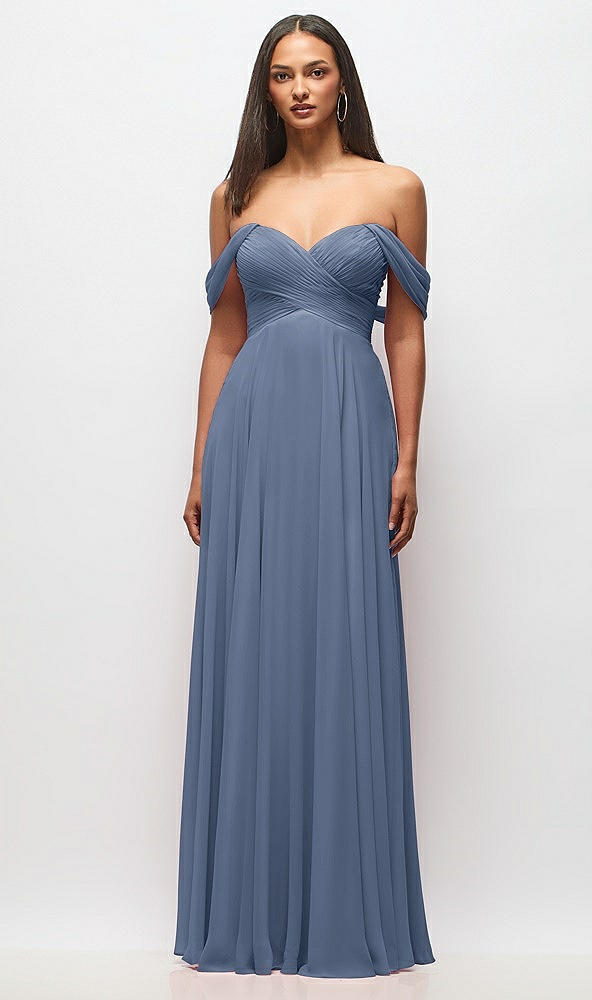 Off-the-Shoulder Draped Chiffon Maxi Dress in Larkspur Blue