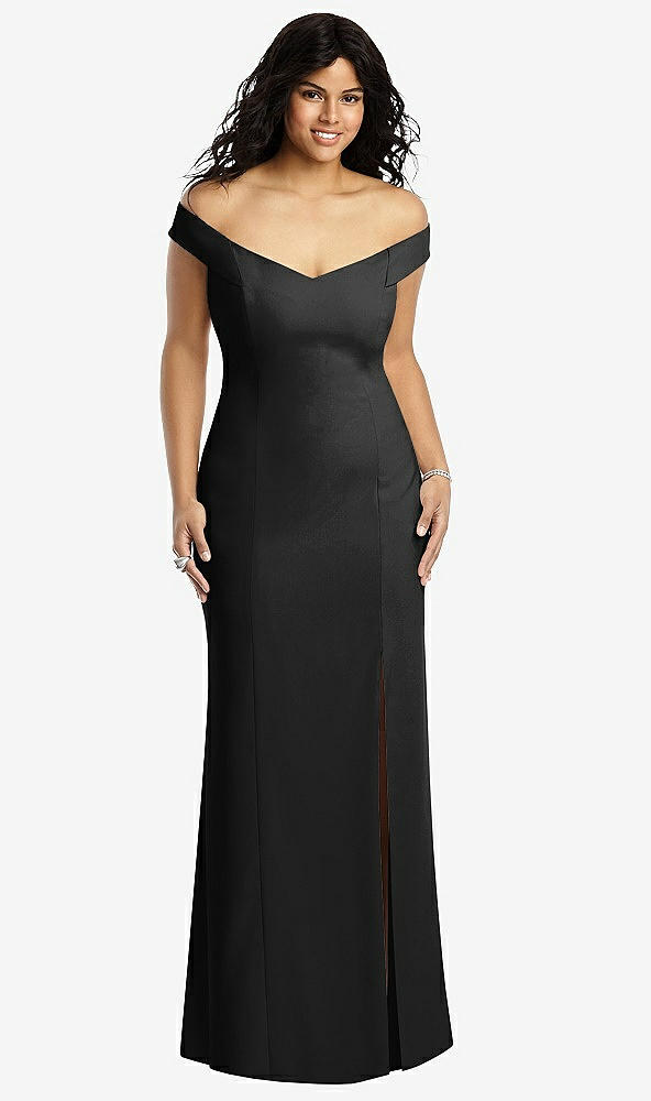Off-the-Shoulder Criss Cross Back Trumpet Gown in Black