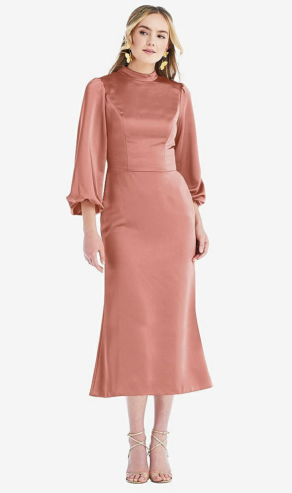 High Collar Puff Sleeve Midi Dress - Bronwyn in Desert Rose