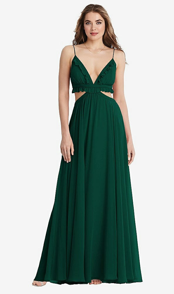 Ruffled Chiffon Cutout Maxi Dress - Jessie in Hunter Green