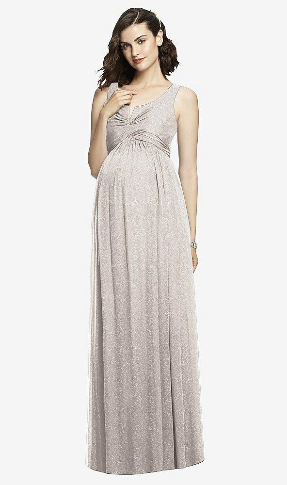 After Six Shimmer Maternity Bridesmaid Dress M424LS in Taupe Silver