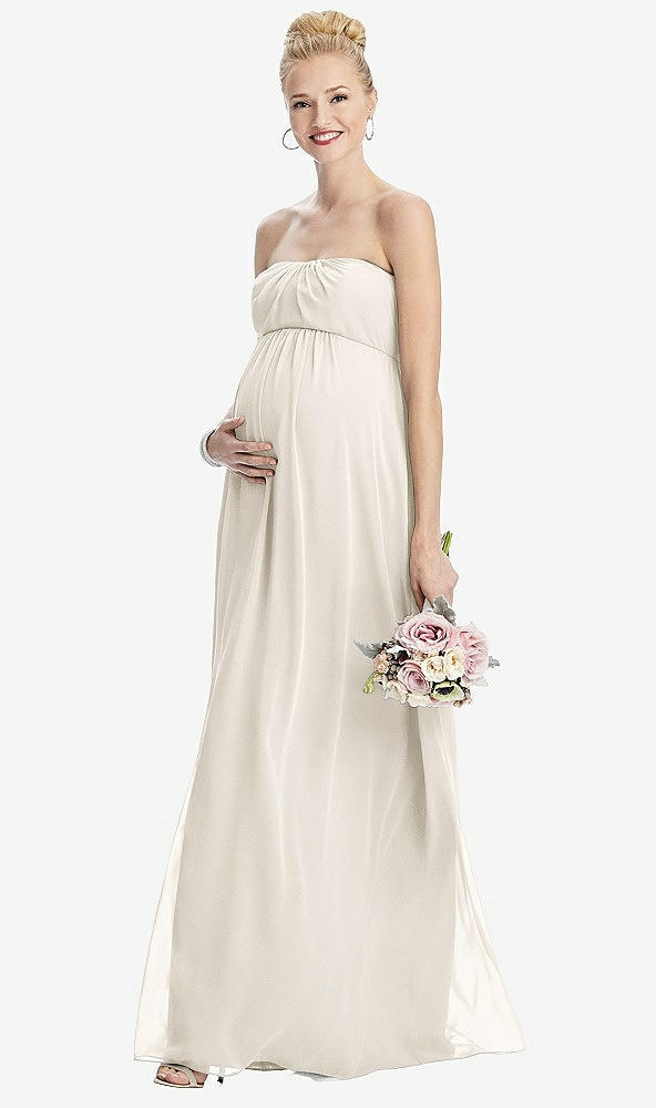 Strapless Chiffon Shirred Skirt Maternity Dress in Ivory