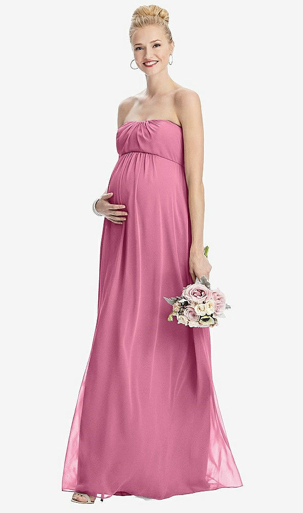Strapless Chiffon Shirred Skirt Maternity Dress in Orchid Pink