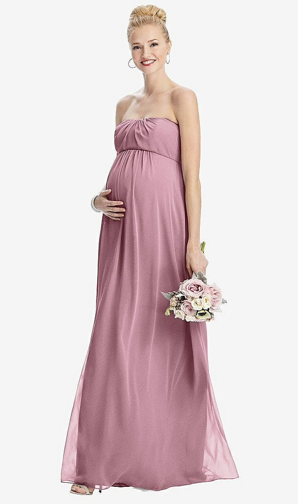 Strapless Chiffon Shirred Skirt Maternity Dress in Dusty Pink