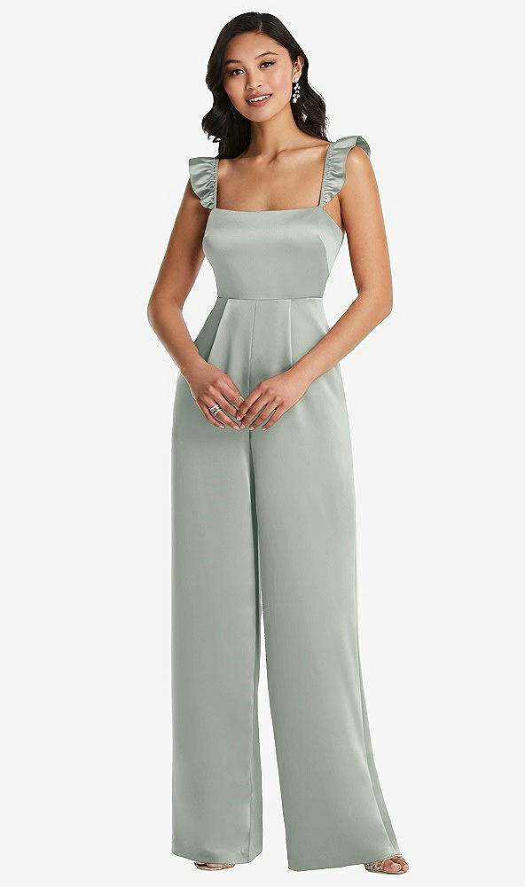 Ruffled Sleeve Tie-Back Jumpsuit with Pockets in Willow Green