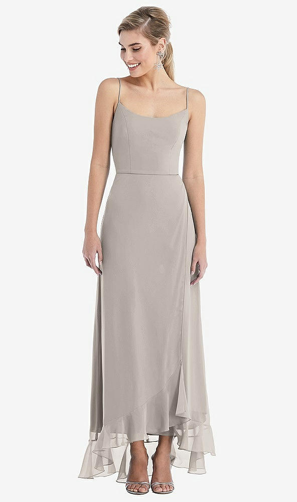 Scoop Neck Ruffle-Trimmed High Low Maxi Dress in Blush