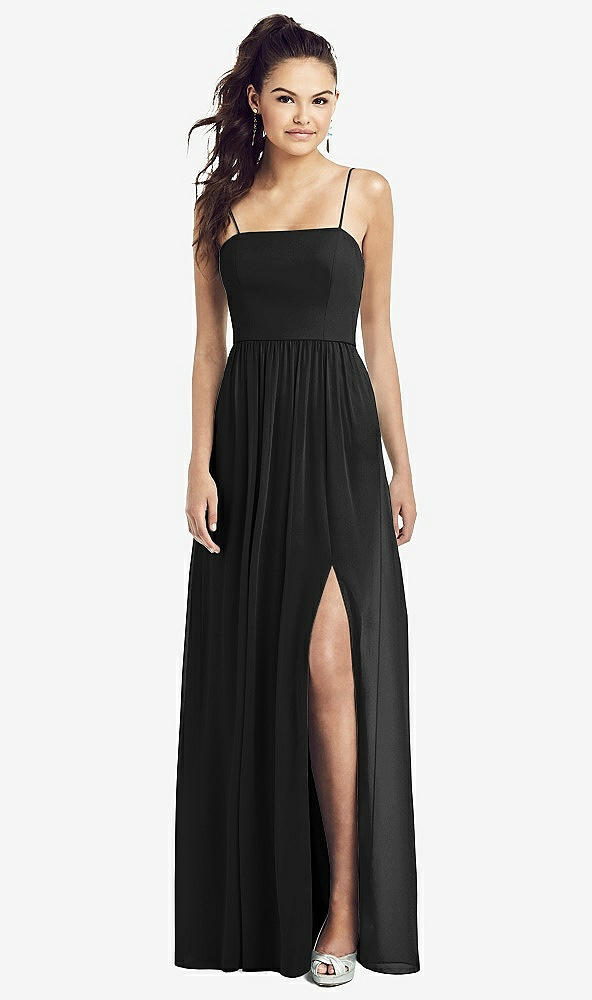 Slim Spaghetti Strap Chiffon Dress with Front Slit in Black