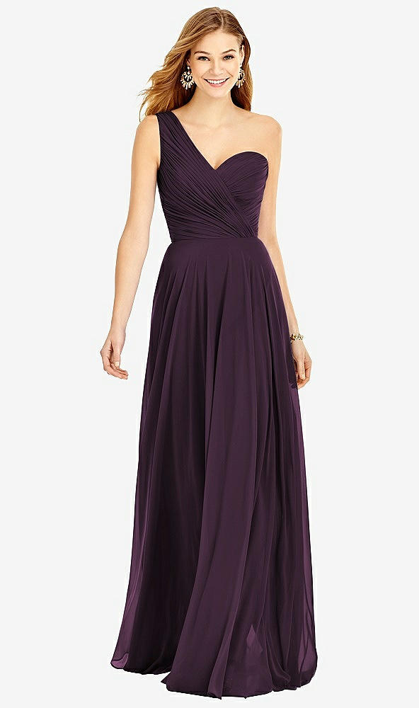 One-Shoulder Draped Chiffon Maxi Dress - Dani in Aubergine