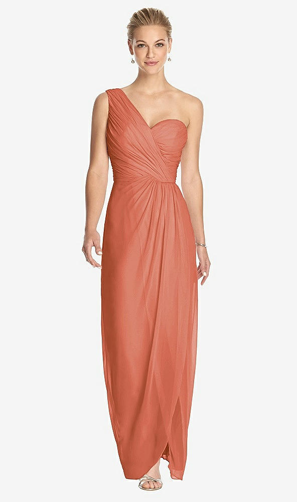 One-Shoulder Draped Maxi Dress with Front Slit - Aeryn in Terracotta Copper