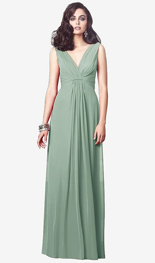 Draped V-Neck Shirred Chiffon Maxi Dress in Seagrass