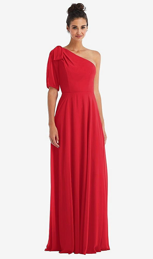 Bow One-Shoulder Flounce Sleeve Maxi Dress in Blush