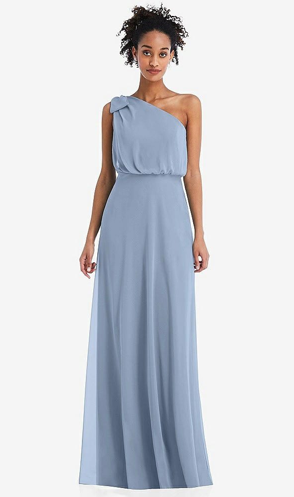 One-Shoulder Bow Blouson Bodice Maxi Dress in Cloudy