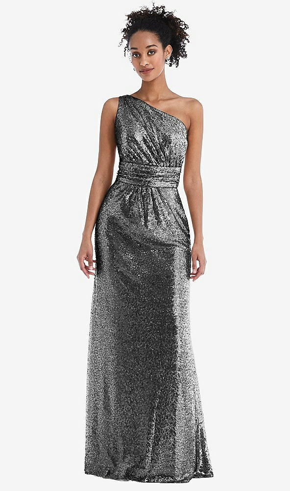 One-Shoulder Draped Sequin Maxi Dress in Stardust