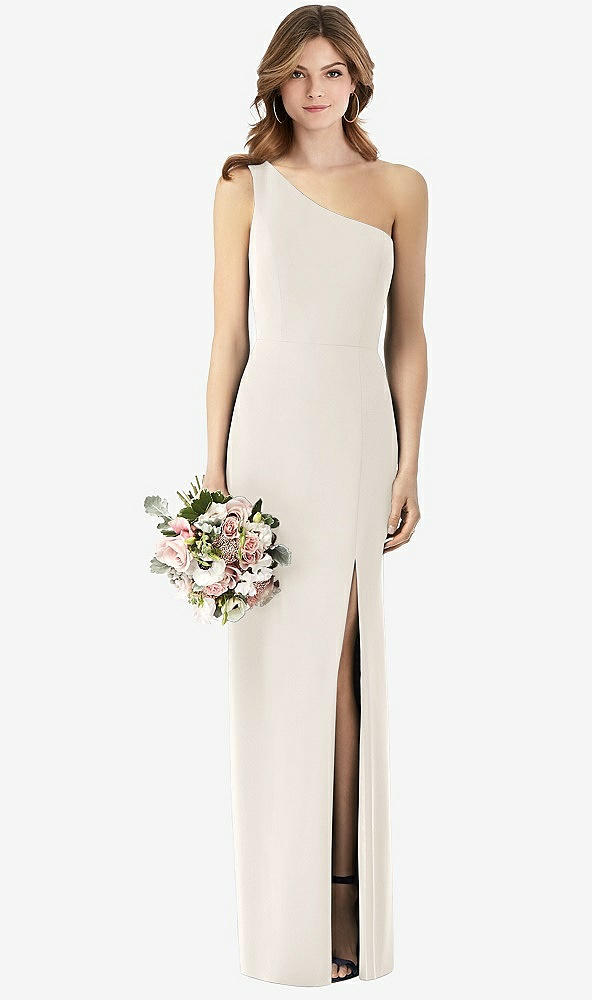 One-Shoulder Crepe Trumpet Gown with Front Slit in Ivory