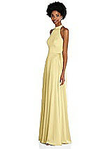 Stand Collar Cutout Tie Back Maxi Dress with Front Slit in Rose