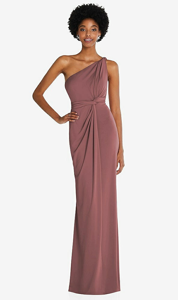 One-Shoulder Twist Draped Maxi Dress in English Rose