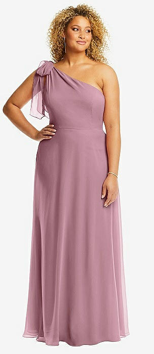 Chiffon One-Shoulder Maxi Dress with Circle Skirt in dusty pink