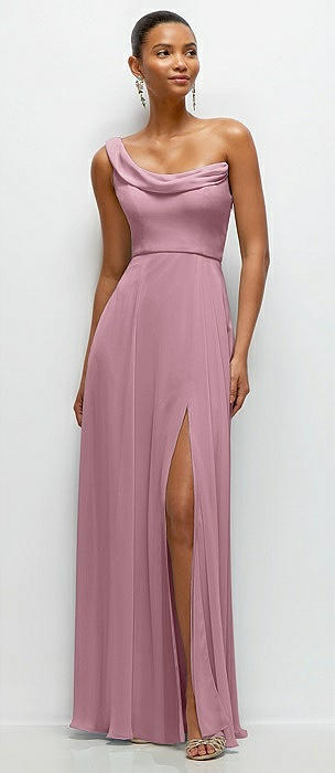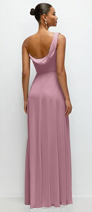 Chiffon One-Shoulder Maxi Dress with Draped Cowl Neckline in dusty pink