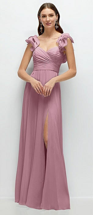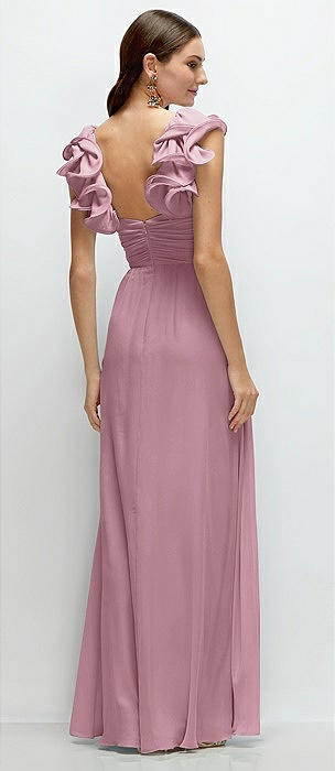 Dramatic Ruffle Edge Strap Chiffon Maxi Dress in dusty pink