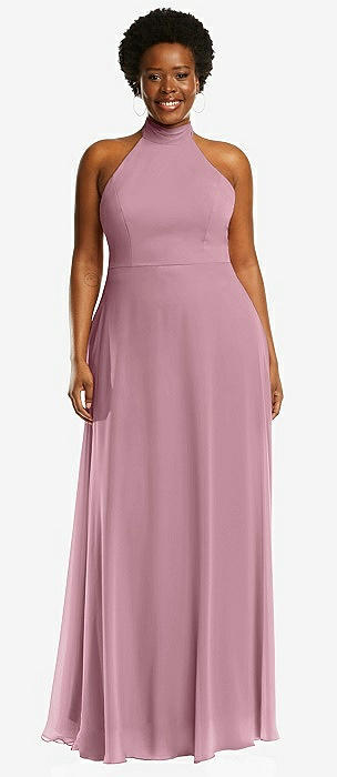High Neck Halter Backless Maxi Dress in dusty pink