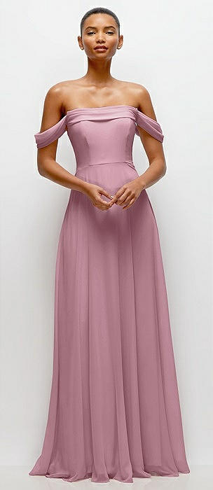 Off-the-Shoulder Draped Chiffon Maxi Dress in dusty pink