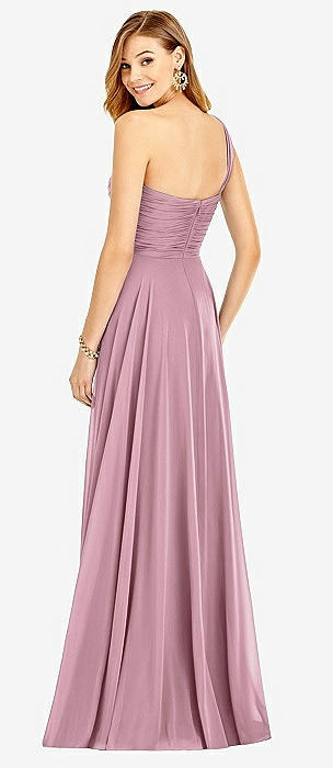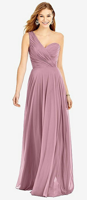 One-Shoulder Draped Chiffon Maxi Dress - Dani in dusty pink