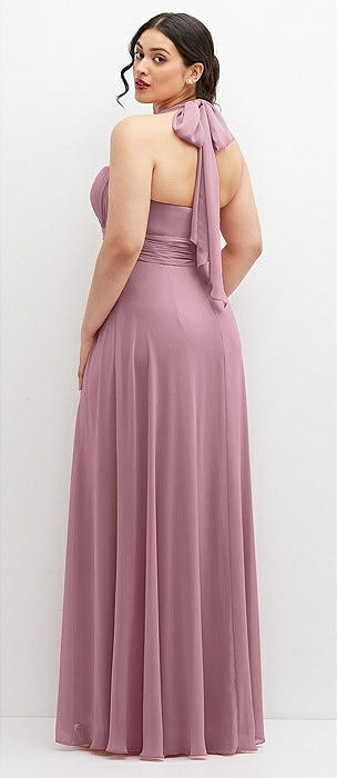 Diamond Halter Maxi Dress with Adjustable Straps in dusty pink