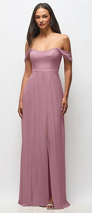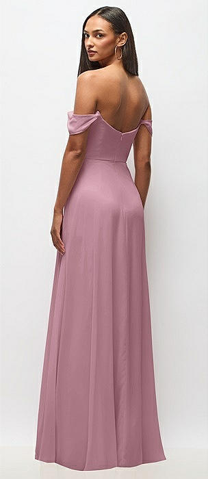 Off-the-Shoulder Draped Neckline Maxi Dress in dusty pink
