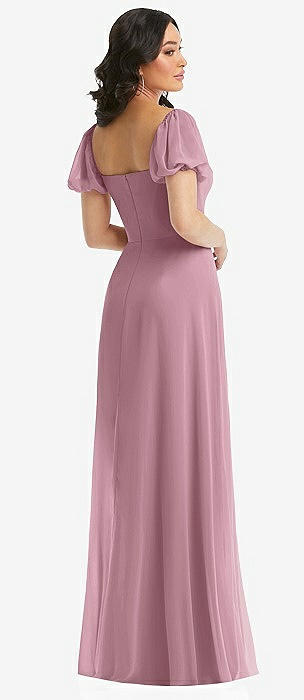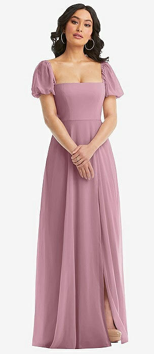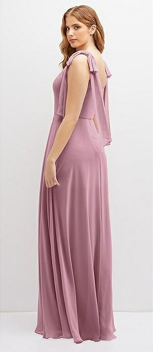 Bow Shoulder Square Neck Chiffon Maxi Dress in dusty pink