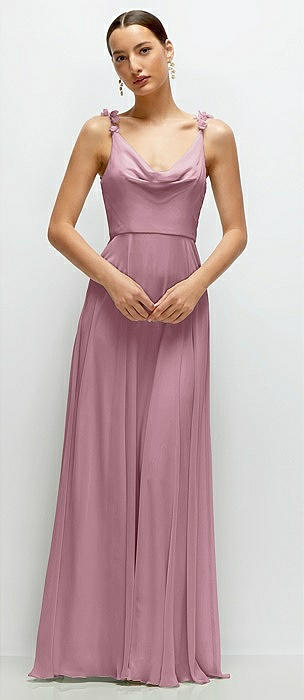 Cowl Neck Chiffon Maxi Dress with Hand-Worked Petal Straps in dusty pink
