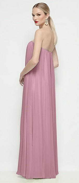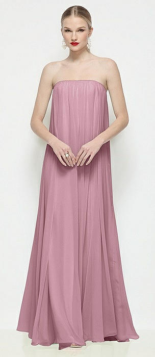 Strapless Shirred Chiffon Trapeze Maxi Dress in dusty pink