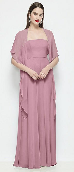 Strapless Chiffon Maxi Dress with Soft Circle Skirt in dusty pink