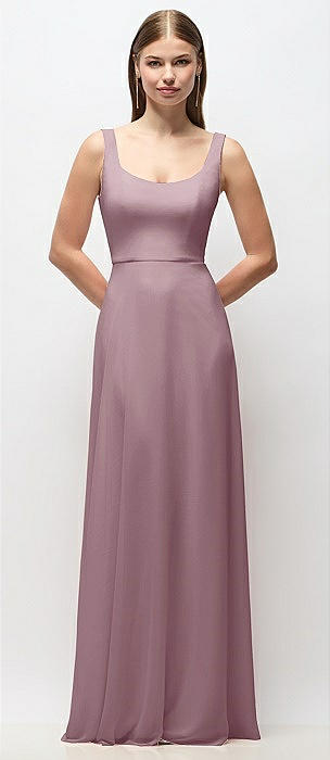 Scoop Neck Tank Strap Chiffon Maxi Dress in dusty rose