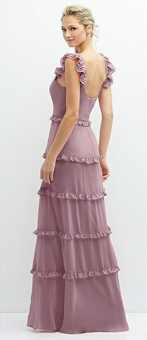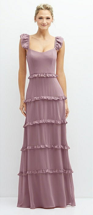 Tiered Chiffon Maxi A-line Dress with Convertible Ruffle Straps in dusty rose