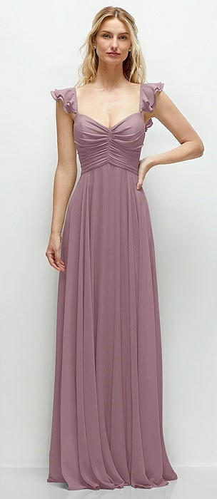 Flutter Sleeve Scoop Open-Back Chiffon Maxi Dress in dusty rose