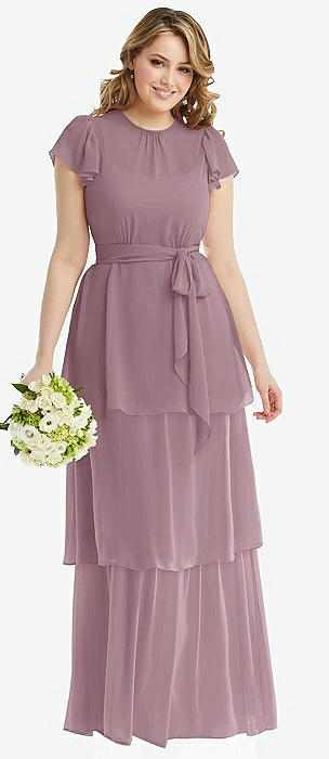 Convertible Ruffle Strap Chiffon Maxi Dress with Full Circle Skirt in dusty rose