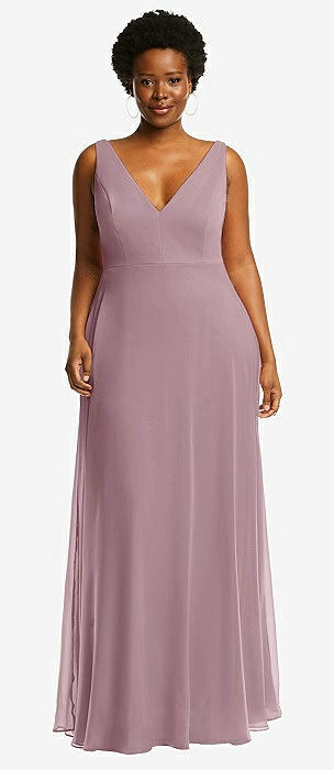 Deep V-Neck Chiffon Maxi Dress in dusty rose