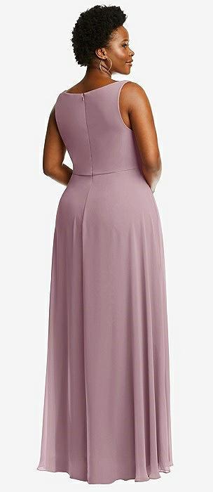 Sleeveless Draped Chiffon Maxi Dress with Front Slit in dusty rose
