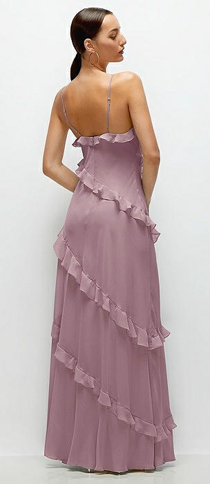 Asymmetrical Ruffle Chiffon Bias Slip Maxi Dress