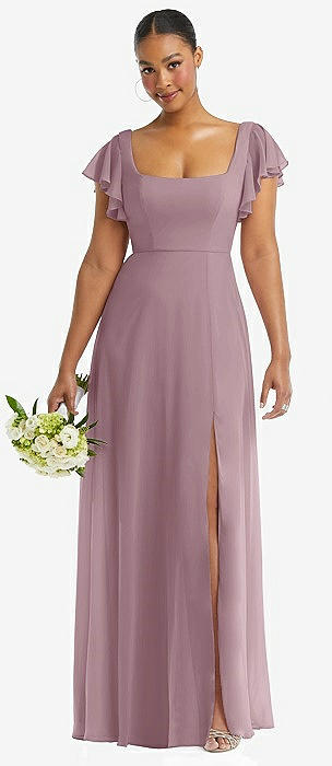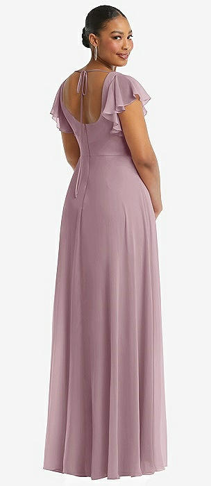 Flutter Sleeve Scoop Open-Back Chiffon Maxi Dress