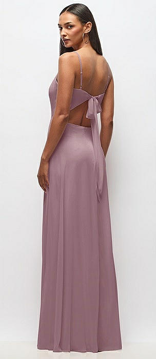 Tie-Back Cutout Maxi Dress with Front Slit in dusty rose
