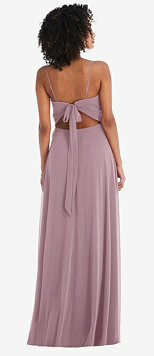 Tie-Back Cutout Maxi Dress with Front Slit in dusty rose