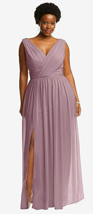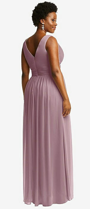 Sleeveless Draped Chiffon Maxi Dress with Front Slit in dusty rose
