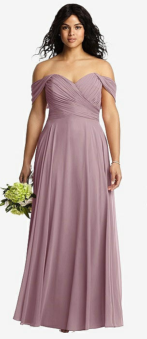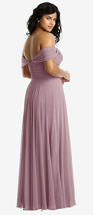 Off-the-Shoulder Draped Chiffon Maxi Dress in dusty rose